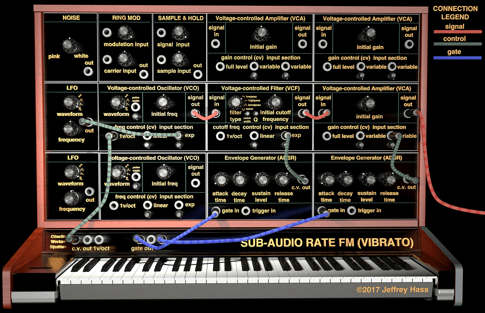 - The modulating wave is often summed with a second c.v. source. In this case, the keyboard voltage is also connected to a frequency control input on the VCO carrier, so with each different key, there is vibrato around the keyboard's center pitch.